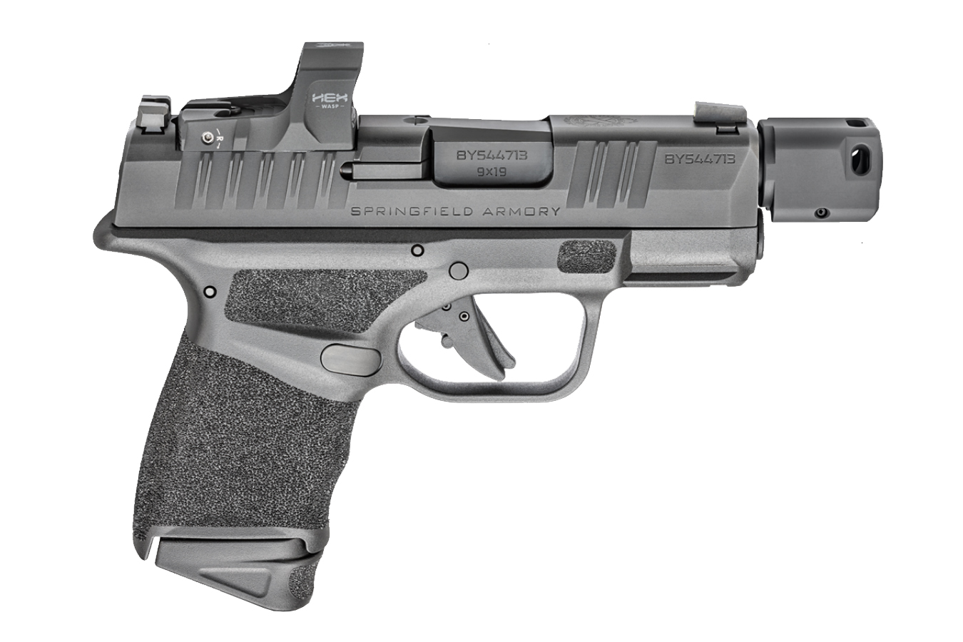 - Slide: Optic-ready slide with serrated cocking serrations front and rear, already configured for the Hex Dragonfly